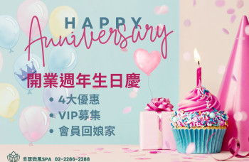 為了回饋新朋友、老朋友與一路支持,我們的「開業週年生日慶」,邀請你把這一年累積的疲憊,好好放下來!