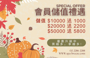 專屬會員儲值金方案,讓您每一次的身心療癒,都能享受更多回饋與禮遇。